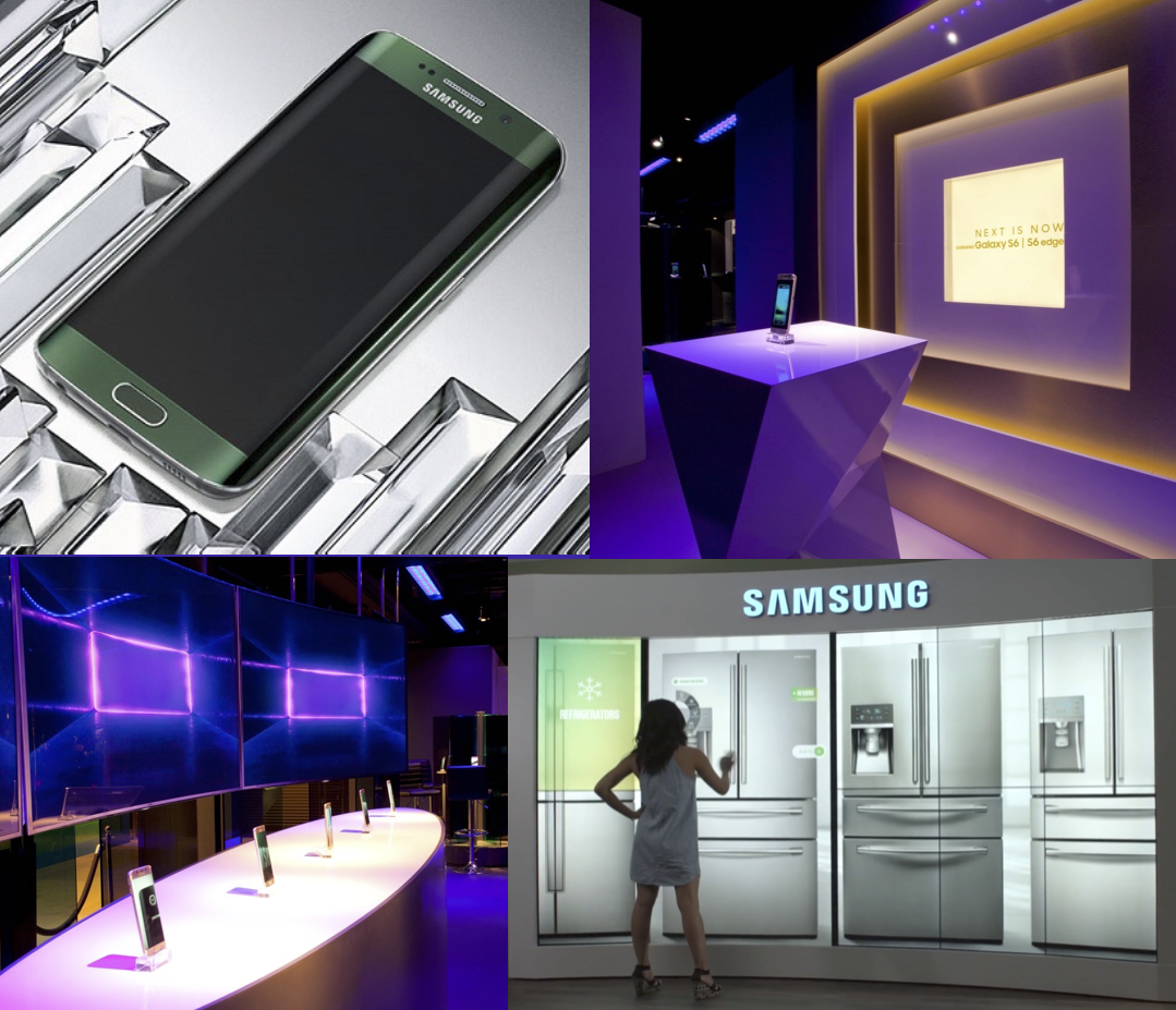 The installation featured a pop-up shop with customizable products and reactive LED displays that used SMS to generate unique localized graphics, as well as a an interactive array of 90" plasma screens with 1:1 animated content that featured Samsung's entire appliance line in one display. The approach minimized the retail footprint required to display a full appliance line, as well as creating a theatrical display to engage multiple users.